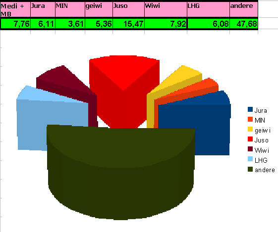 ... so hat sich die AStA-Mehrheit nun komfortabel vergrößert. Die AStA-tragenden Listen wurden also von den Wählerinnen und Wählern - trotz individueller Verluste - bestätigt.